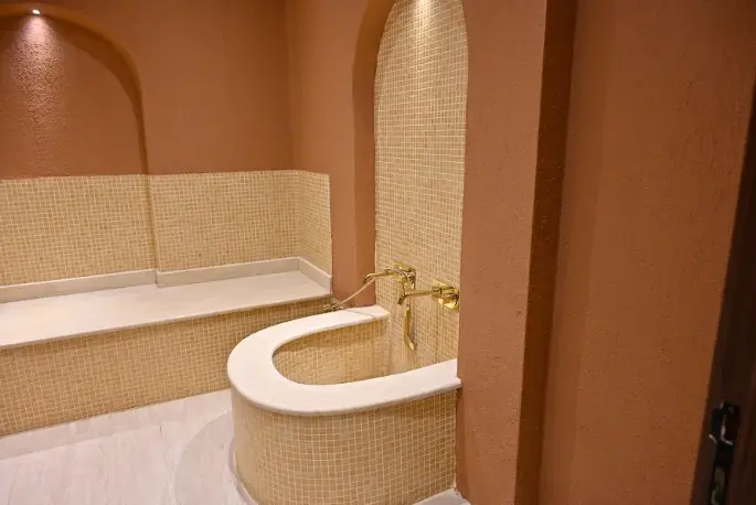 - الحمام المغربي ومنطقة السبا: تجهيز هندسي متكامل يشمل العزل المائي الحراري، أنظمة البخار، وتصريف المياه وفق المعايير الصحية والفنية الدقيقة.